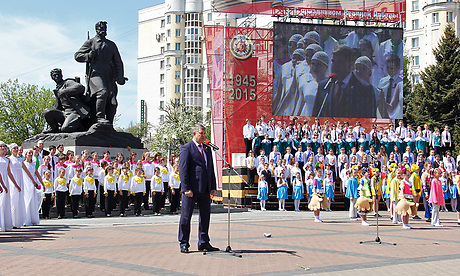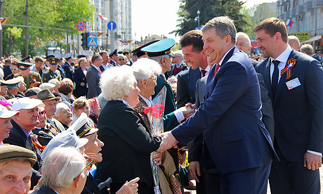 — Пройдут годы, сменятся поколения, но я уверен, что этот день будет самым уважаемым и почитаемым нашим народом праздником. Это символ храбрости и мужества, подвига и чести, это день памяти и скорби. Не только на фронте, где грохотала канонада, но и в тылу миллионы людей, работая на фабриках и заводах, ковали и приближали долгожданную победу. Спасибо вам, труженики тыла за ваш героический труд. Дорогие ветераны! Я хочу сказать в этот праздничный день вам простое русское спасибо за подвиг, который вы свершили для нас — ныне живущих. Спасибо за мощь и величие нашей страны, за то, что мы сегодня спокойно растим детей и строим планы на будущее. Ваше поколение по праву является поколением победителей. И ваш пример очень важен для нас. Он дает нам веру в великую, могучую и непобедимую Россию!