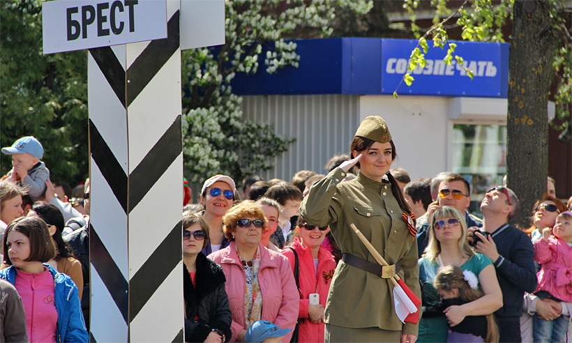 Участники Парада прошли до площади Партизан, где началось театрализованное представление «Это наша Победа!».