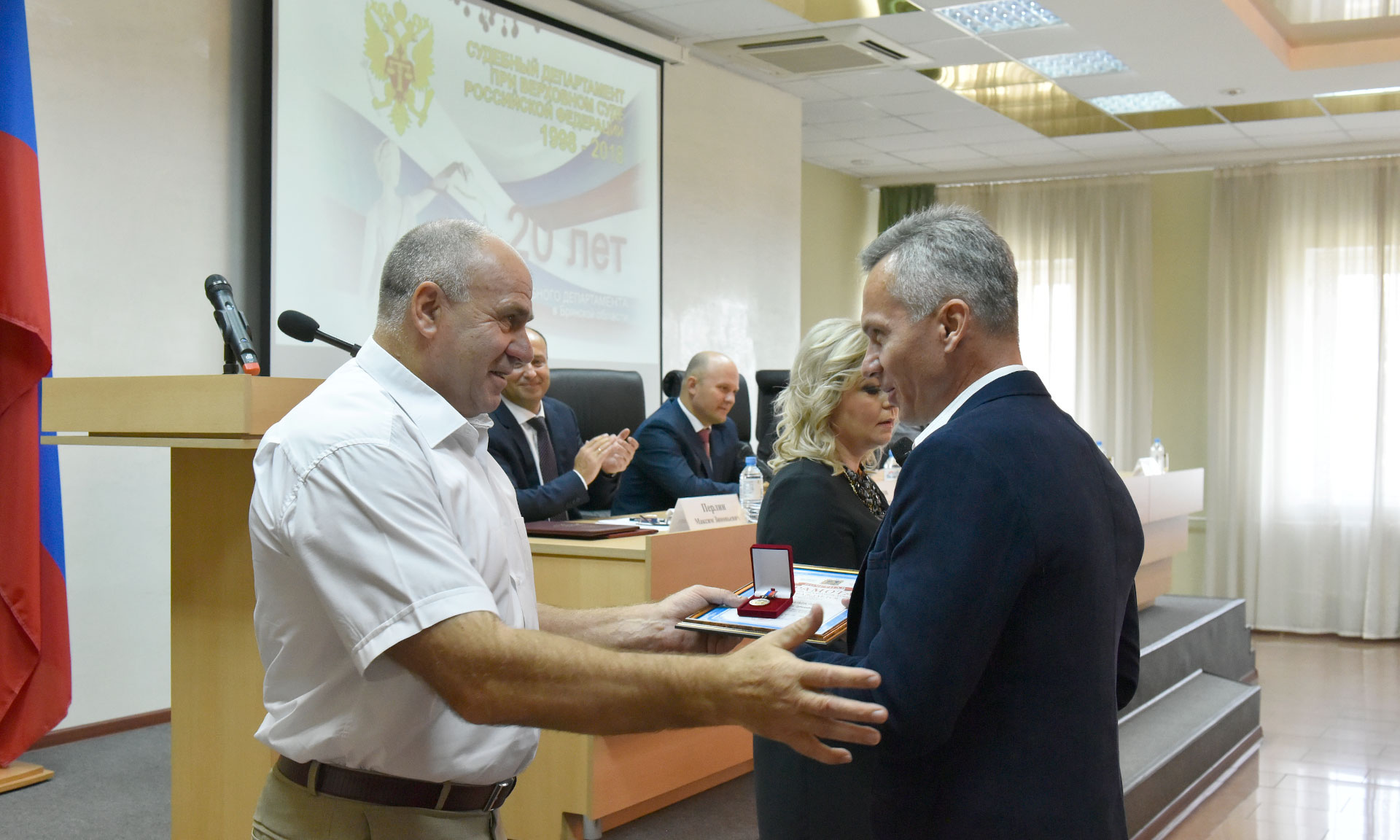 7 сентября в здании Брянского областного суда состоялось торжественное мероприятие, посвященное 20-летию со дня образованиям управления Судебного департамента в Брянской области.