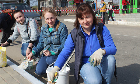 На улицах города трудятся многие трудовые коллективы. Работники районной администрации красят улицу Красноармейскую от Мглинской до автовокзала, работают на стадионе и других участках города. Коллективы райсобеса, центра соцобслуживания, ЦЗН и детской библиотеки, горводоканала, районного центра культуры и другие белят деревья и столбы на своих закрепленных территориях. Сотрудники районной газеты «Восход» вчера побелили столбы и деревья на закрепленном за ними участком улицы Вокзальной, сегодня очищают от мусора и сухостоя обочины оврагов у поворота на новое кладбище. Освежают декоративные заборы и бордюры на своей территории работники МФЦ.