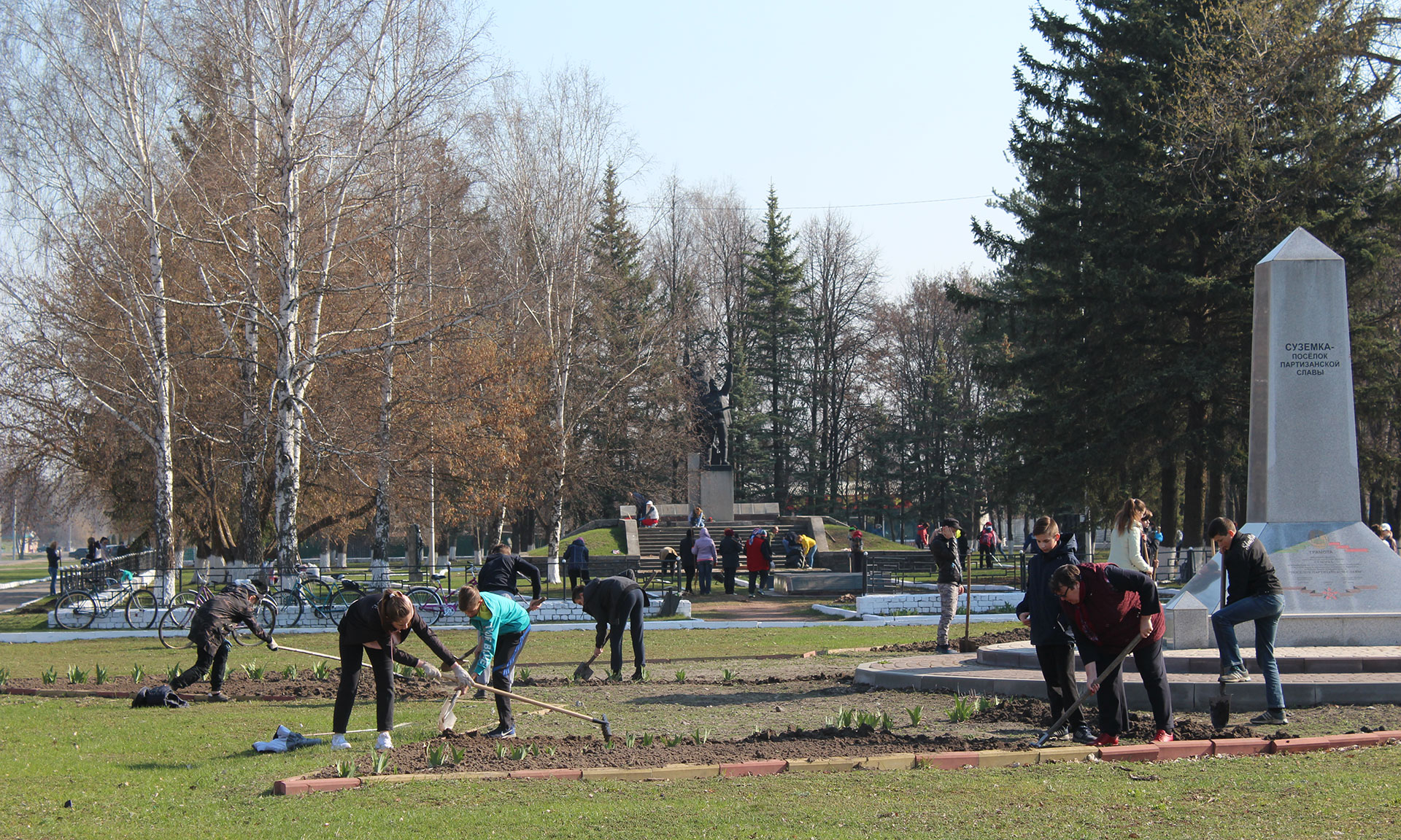 20 апреля работники учреждений, предприятий и организаций Суземского района, добровольцы дружно вышли на субботник. В первую очередь, навели порядок в памятных местах — у стелы Партизанской Славы, Кургана славы, местах воинских захоронений. Скопившийся за зиму мусор, листву и ветки убрали в парках и местах отдыха, еще раз навели порядок у своих офисов и на территориях предприятий, покрасили здания и бордюры, высадили цветы. Ученики школ района облагородили пришкольные участки, навели порядок на памятных местах, закрепленных за каждой школой. На кладбищах с помощью специальной техники ликвидировали аварийные деревьях. По предварительным подсчетам, участие в субботнике приняли более тысячи человек
