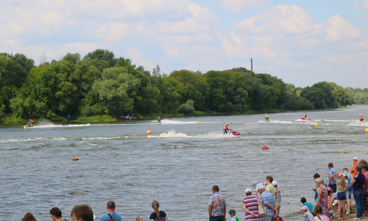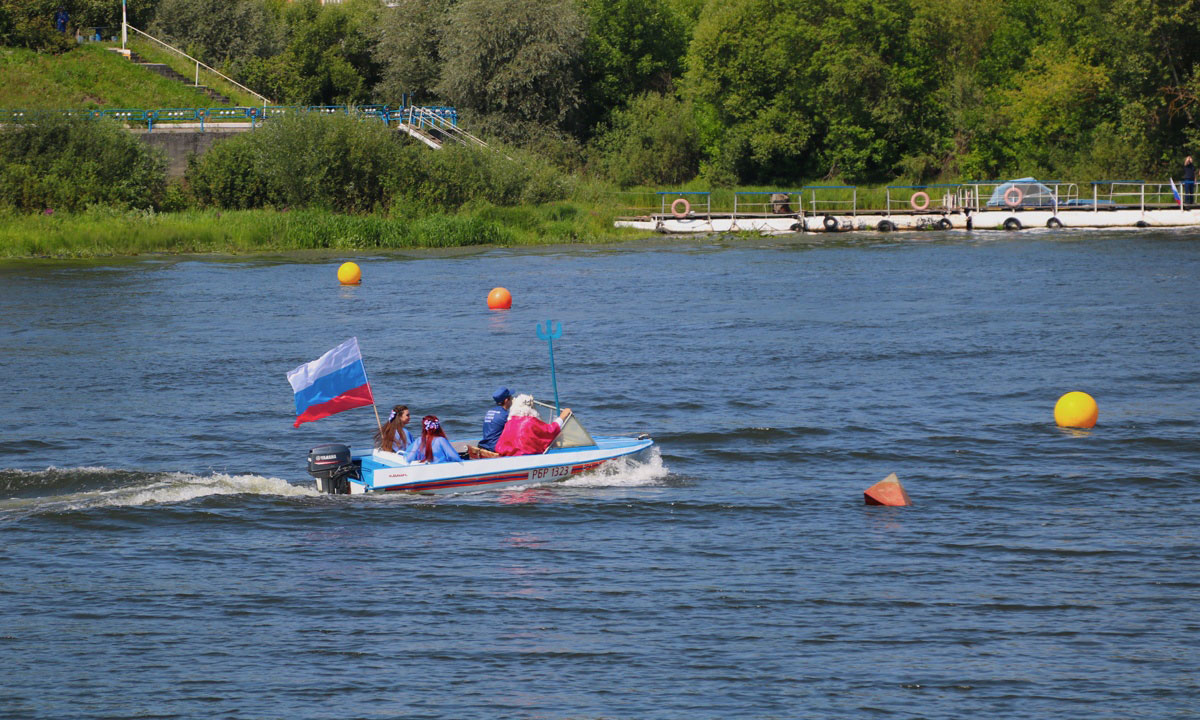 После поднятия Андреевского флага и Военно-морского флага СССР на акватории Десны прошли соревнования аквабайкеров, показательные выступления судомоделистов, на берегу соревновались волейболисты. Не обошлось без перетягивания каната, поднятия гири, подтягивания на перекладине, армрестлинга. На протяжении всего праздника звучали песни о морской службе, о подвиге военных моряков, для детей работали аттракционы, а гостей праздника приглашали подкрепиться предприятия торговли.