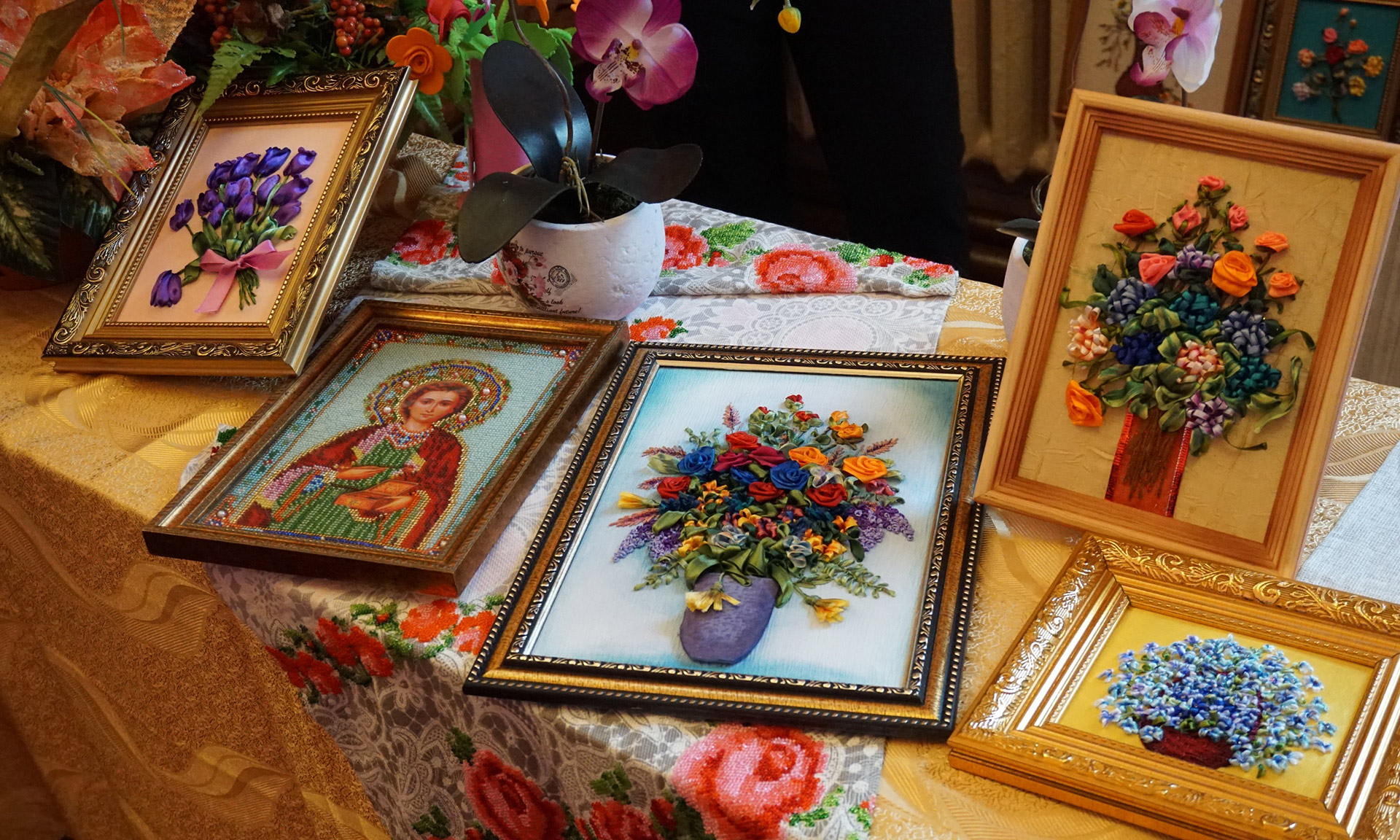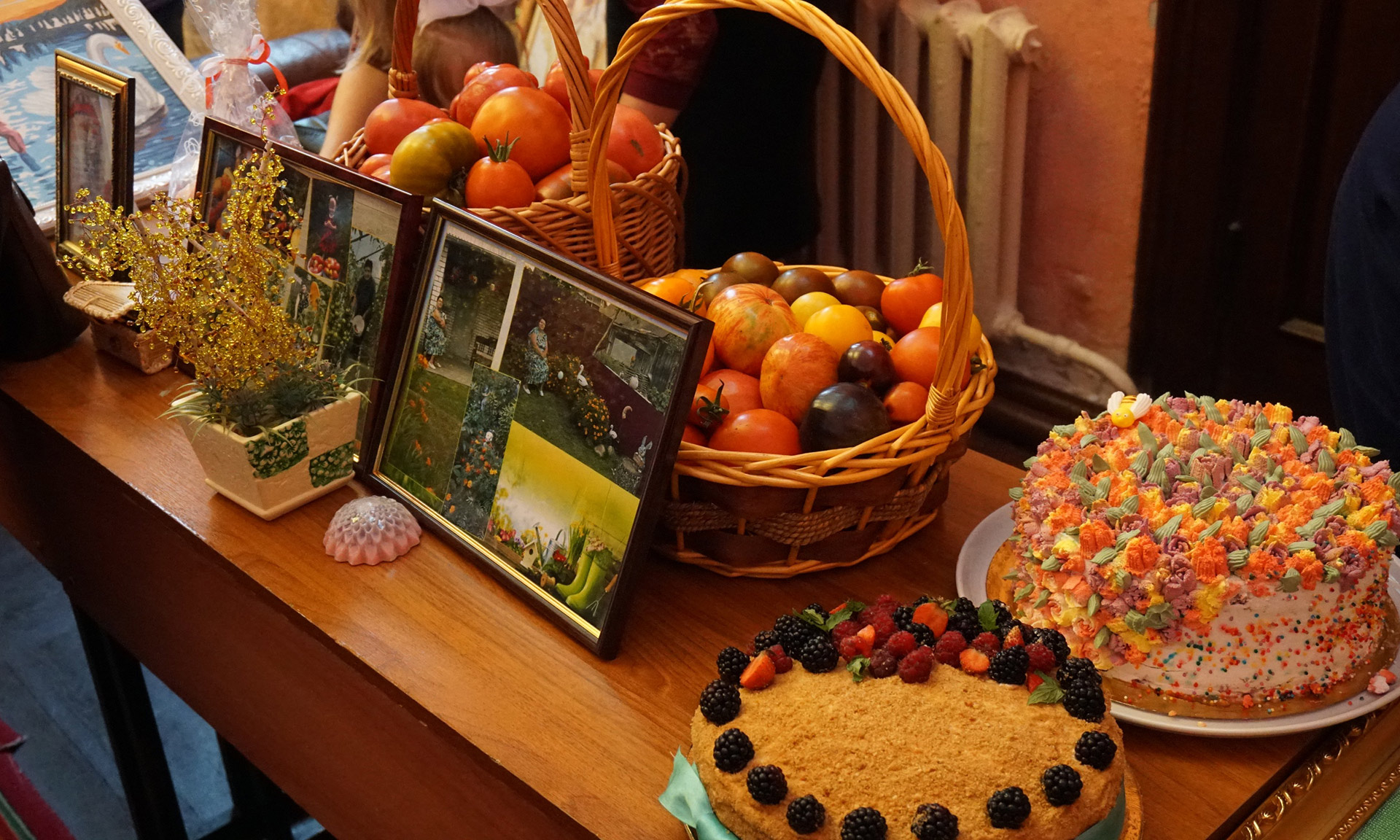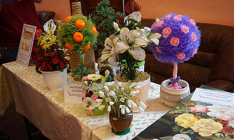 Петр Пицуренко гостеприимно угощал всех горячим чаем с душицей, мятой, ромашкой — травы коллекционер собирает сам на брянских полях. Свой урожай принесли в ДК Советского района также многие представители территориального общественного самоуправления области. Так, ТОС «Левобережный» показал корзины с краснощекими помидорами, ТОС «Искорка» напек тортов и пирогов, ароматные булочки с яблоком и яйцом привез из Сельцо ТОС «Коммунар», а вот ТОС «Алень» из Клетни удивил цветочными работами своих хозяек из бисера и вышитыми картинами и иконами.