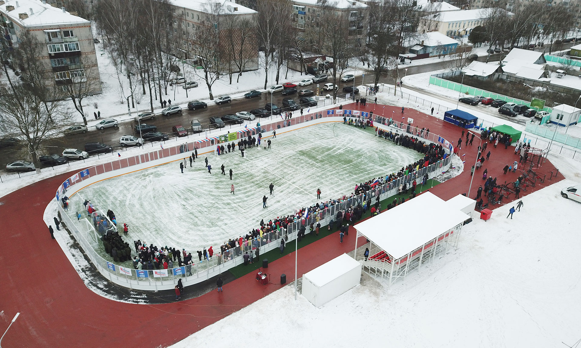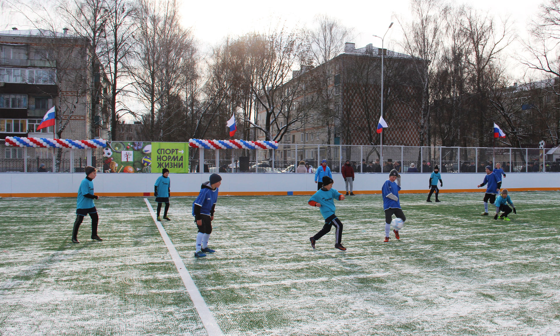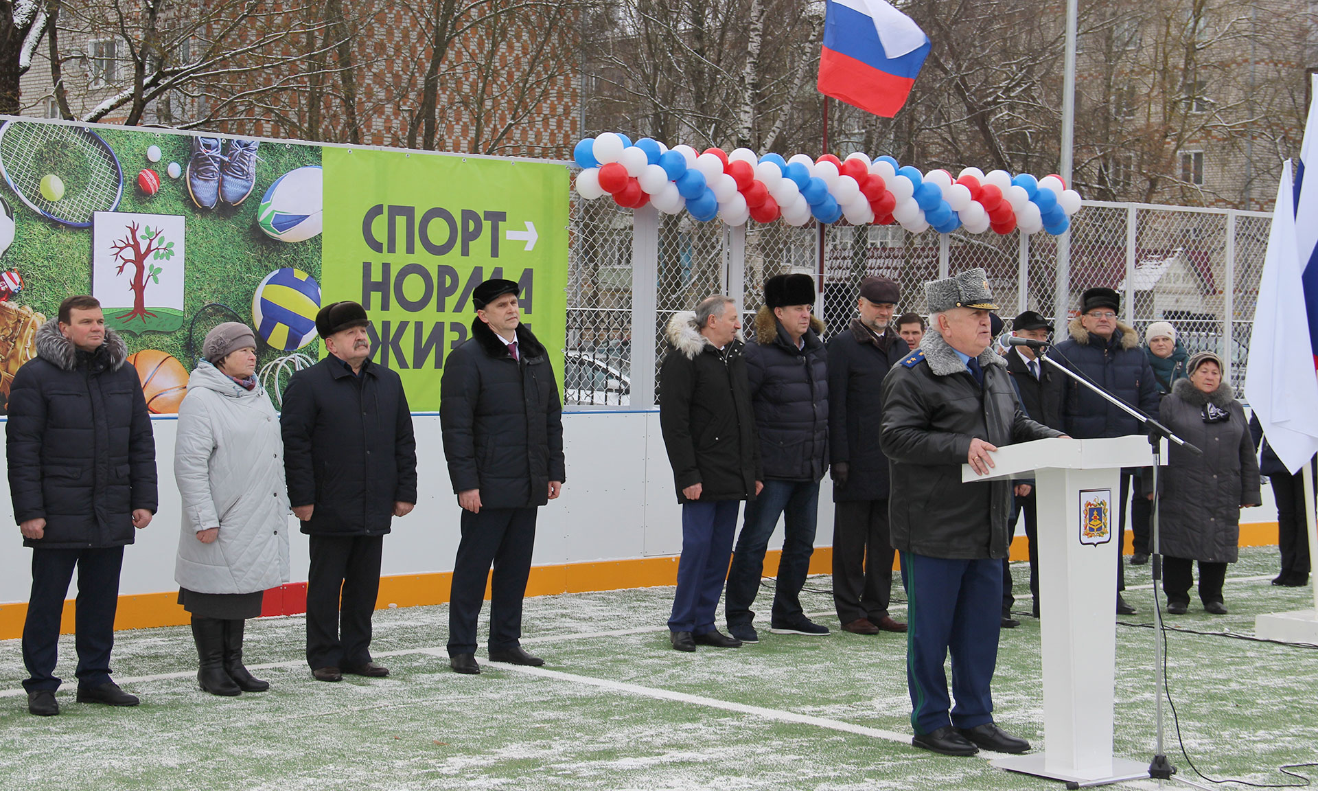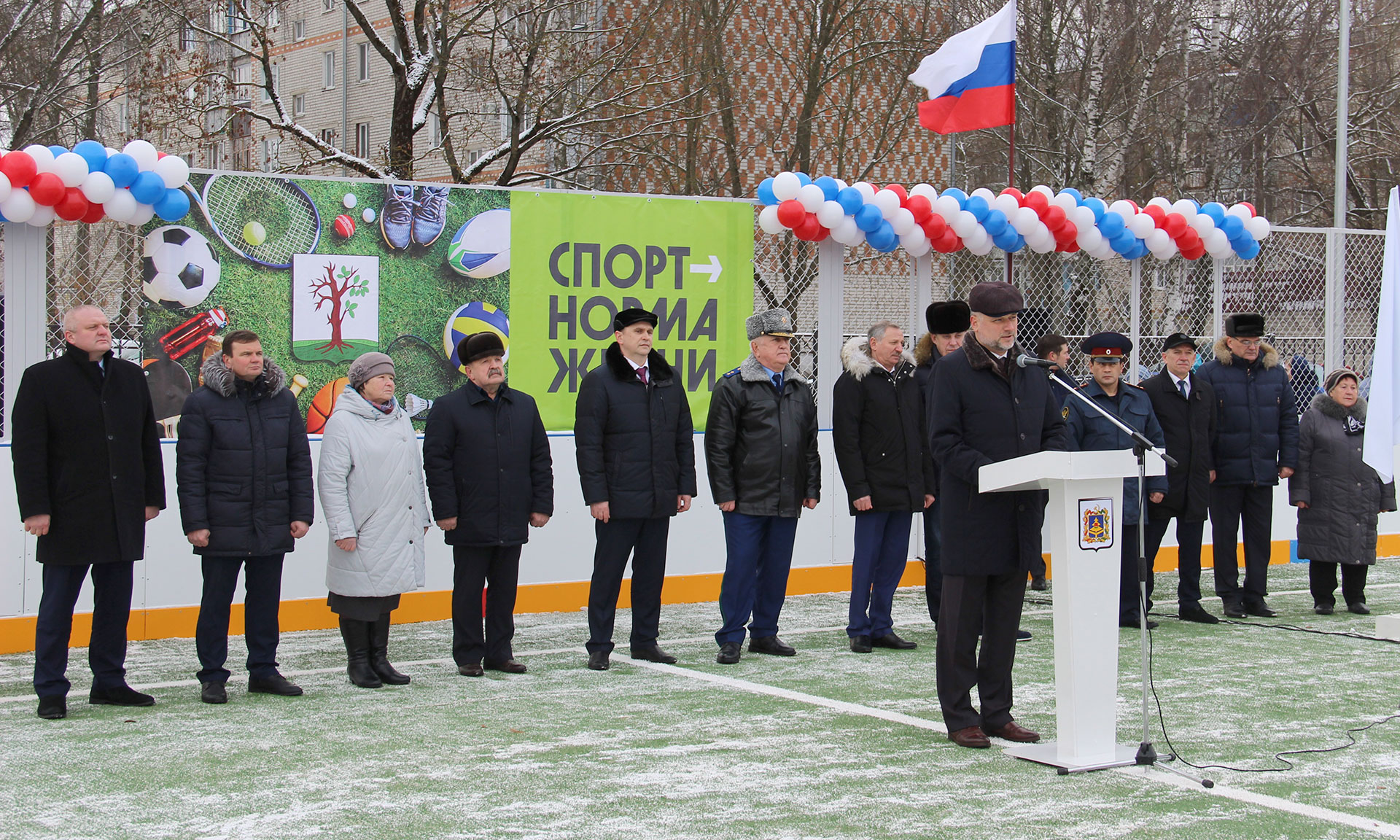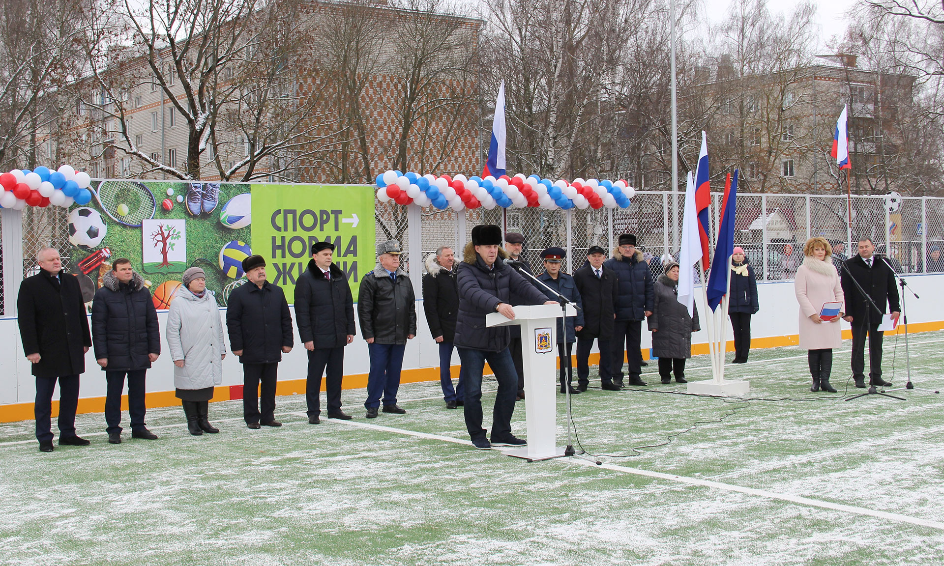 — Дорогие земляки! Я от всей души хочу вас поздравить с этим знаковым событием для Стародубской земли и Брянской области! Сегодня мы сдаем в эксплуатацию такую прекрасную площадку, где можно заниматься различными видами спорта, начиная от мини-футбола до хоккея зимой, где установлены силовые тренажеры. Еще одна такая площадка будет сдана в эксплуатацию в Новозыбкове, два современных футбольных поля с современным искусственным покрытием — в Сураже и в Брянском районе, в Добруни, и еще 11 спортивных площадок — на территории Брянской области.