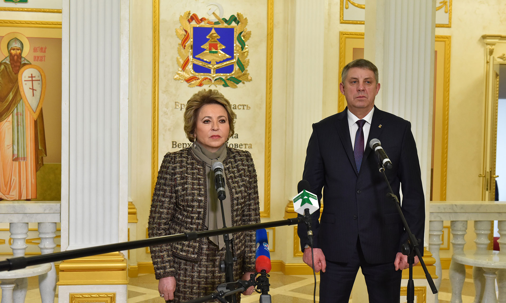 Председатель Совета Федерации Федерального Собрания Российской Федерации Валентина Матвиенко и Губернатор Брянской области Александр Богомаз ответили на вопросы представителей федеральных и региональных СМИ.