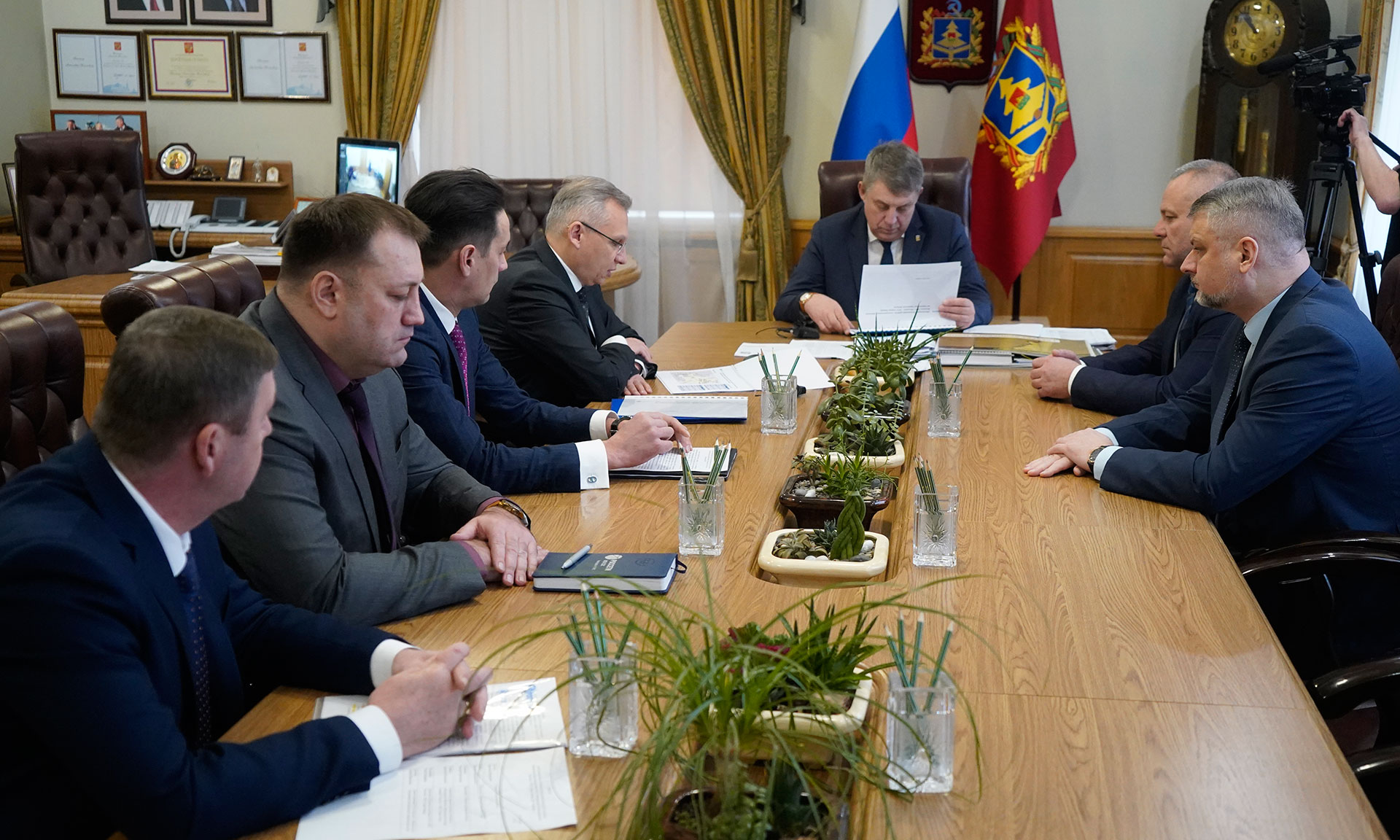 Состоялась рабочая встреча Губернатора Брянской области Александра Богомаза и генерального директора филиала ПАО «Федеральная сетевая компания — Россети» — МЭС Северо-Запада Дмитрия Очайкина.