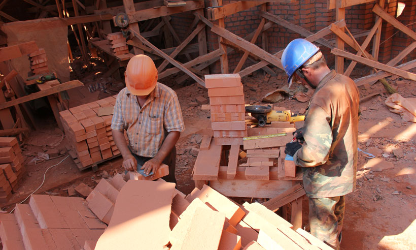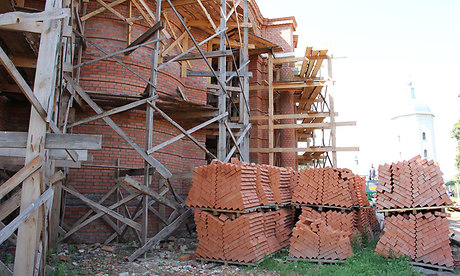 Из 2,5 млн. штук кирпича уже уложено более половины. На объекте постоянно работают до 20 рабочих, строительная техника.