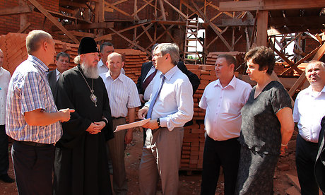 28 июня Председатель Правительства Брянской области Николай Денин и митрополит Брянский и Севский Александр осмотрели, как идёт восстановление Успенского Собора Свенского монастыря.