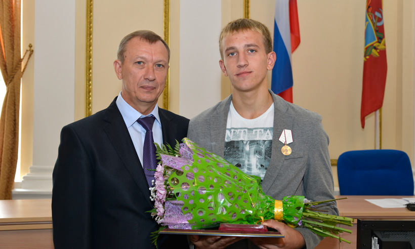 По традиции Николай Денин рассказал о некоторых награжденных. И начал с тех, кто еще не встал на трудовой путь, но зато проявил недетское мужество в опасной ситуации. Школьника из Мглина Сергея Гладышева всегда отличали такие качества, как надежность, решительность и стойкость. Эти качества пригодились парню в сложной ситуации. Ныряя на большую глубину, Сергей спас тонувшую девочку. За этот героический поступок он награжден общественной медалью и Почетной грамотой, а сегодня награжден государственной наградой — медалью «За спасение погибавших».