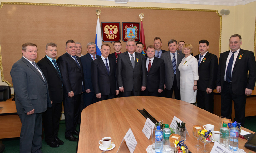 Губернатор Николай Денин отметил положительную динамику во взаимоотношениях соседей, полезность деловых и культурных контактов, вручил гостям памятные медали «70 лет освобождения Брянской области».