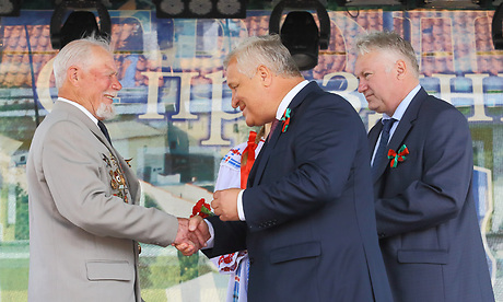 От имени Губернатора Брянской области Федор Костюченко вручил медали «70 лет освобождения Брянской области» гродненцам, принимавшим участие в освобождении Брянщины: Алексею Михайловичу Кузнецову, Прасковье Николаевне Шаминой, Зинаиде Тимофеевне Судаковой. Торжественная церемония прошла на центральной площади Гродно.