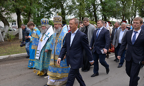Губернатор Николай Денин принял участие в Божественной литургии, которую отслужил в восстановленном Успенском соборе Свенского монастыря Митрополит Брянский и Севский Александр, и Крестном ходе: представители духовенства, исполнительной, законодательной власти региона, муниципальных образований, горожане прошли от древней обители к Кафедральному собору.