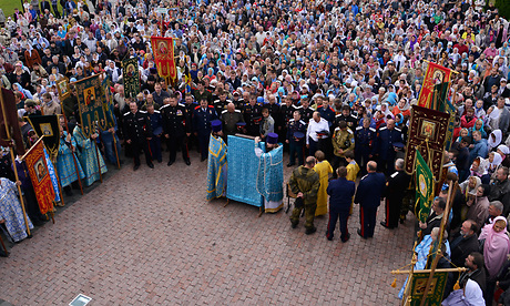 Николай Денин, обращаясь затем к собравшимся у стен главного храма Брянщины отметил объединяющее начало состоявшегося события, поблагодарил всех, кто пожертвовал деньги на возрождение из руин Успенского собора, взорванного в 1930 году.