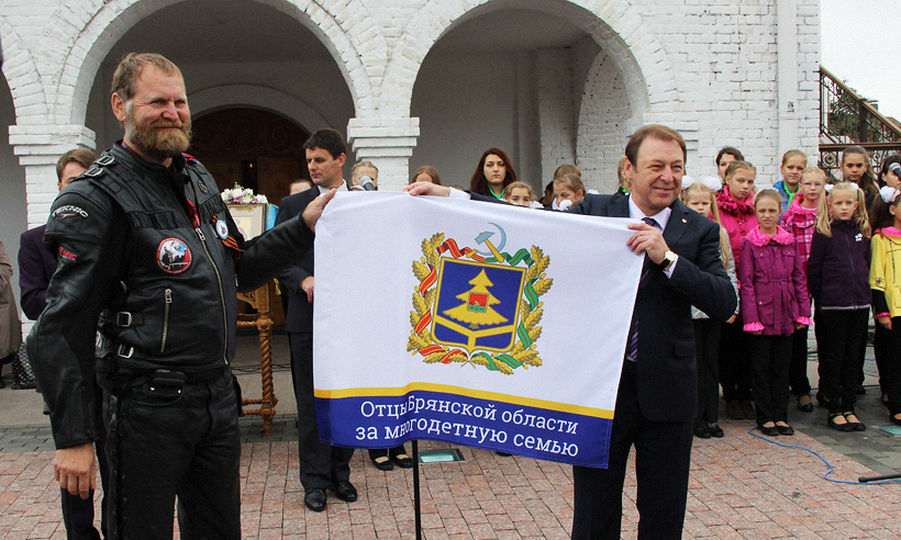 По окончании молебна заместитель Губернатора Андрей Пономарев передал участникам акции флаг с гербом региона и надписью «Отцы Брянской области за многодетную семью». Этот флаг доставят в Москву в Большой Кремлевский дворец на Международный форум семей, который состоится 10—12 сентября 2014 года.