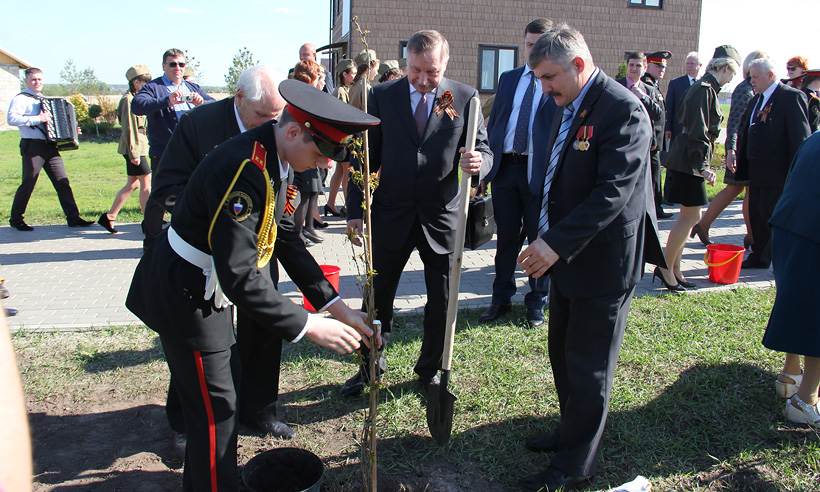 В завершение встречи ветераны, поисковики и кадеты вместе с полномочным представителем Президента и представителями региональных властей посадили деревья на аллее на территории стрелкового клуба.