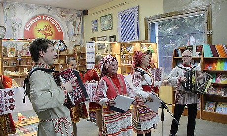 Почетные гости познакомились с неповторимым разнообразием брянского народного творчества, представленного в торгово-выставочном зале «Брянщина мастеровая», и даже сделали первые приобретения.