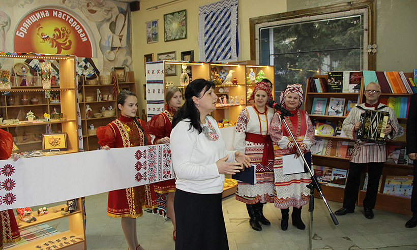От имени представителей творческого сообщества, Правительство Брянской области, Дом народного творчества и руководство книжного магазина поблагодарила народный мастер России Татьяна Королева. Она отметила, что открытие выставки-продажи является ценным подарком для всех брянских умельцев.
