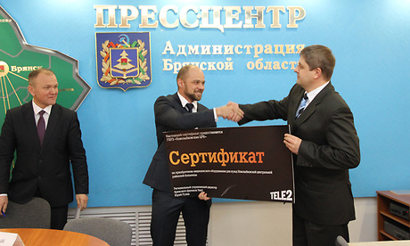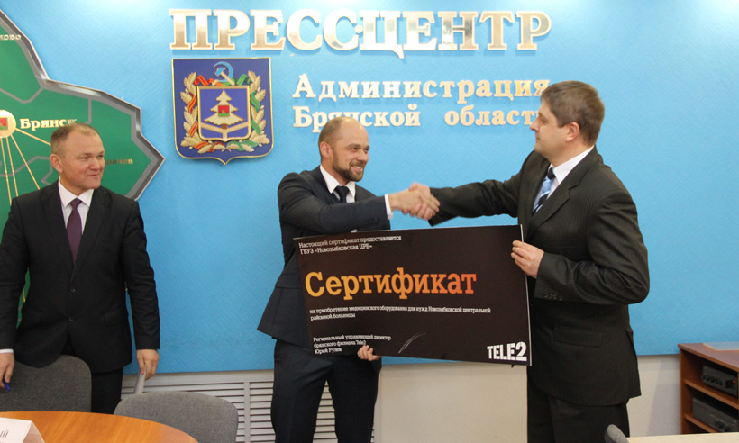 17 декабря в пресс-центре Правительства Брянской области состоялась передача сертификата на приобретение медицинского оборудования для хирургического отделения Новозыбковской центральной районной больницы от альтернативного оператора мобильной связи Брянск — Tele2.