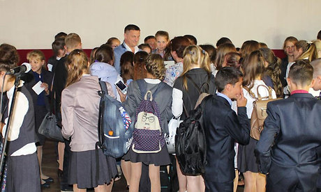 В рамках акции в кинотеатре «Аврора» состоялась встреча с актером кино Александром Ермаковым. С приветственным словом к участникам мероприятия обратился Герой Российской Федерации Александр Постоялко и представил Александра Ермакова жителям Почепа. Зрители, пришедшие на встречу с актером услышали стихи и монологи, рассказывающие не только о трагедии Беслана, но и о славном героическом прошлом и настоящем России, о молодых защитниках отчизны в локальных вооруженных конфликтах, о подвиге десантников Псковской гвардейской 6-й роты. В память обо всех погибших за Отечество была объявлена минута молчания. В зале находилась в основном студенческая и учащаяся молодежь г. Почепа. В полной тишине, на одном дыхании зрители слушали актера, и у многих возникал один на всех вопрос «А я? Смог бы я поступить так, как поступили эти молодые ребята?» Также на встречу пришли, учителя, священнослужители, ветераны войн и военных конфликтов.