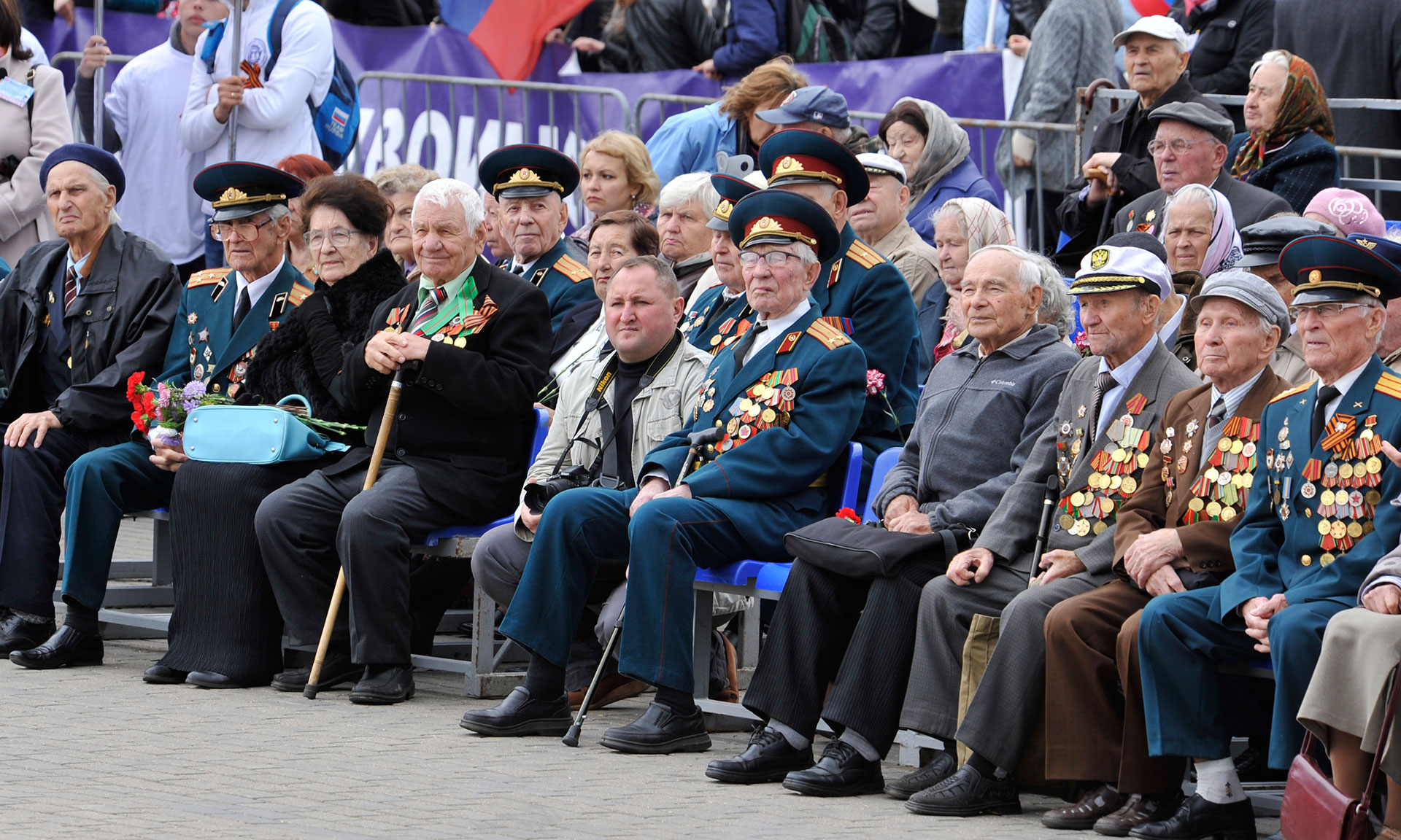 Первыми на площадь прибыли самые почетные гости, настоящие герои этого дня — ветераны Великой Отечественной войны. Колонну автомобилей УАЗ с убеленными сединами, награжденными орденами и медалями ветеранами, теми, кому мы обязаны за жизнь и мирное небо над головой, площадь Партизан встретила аплодисментами.