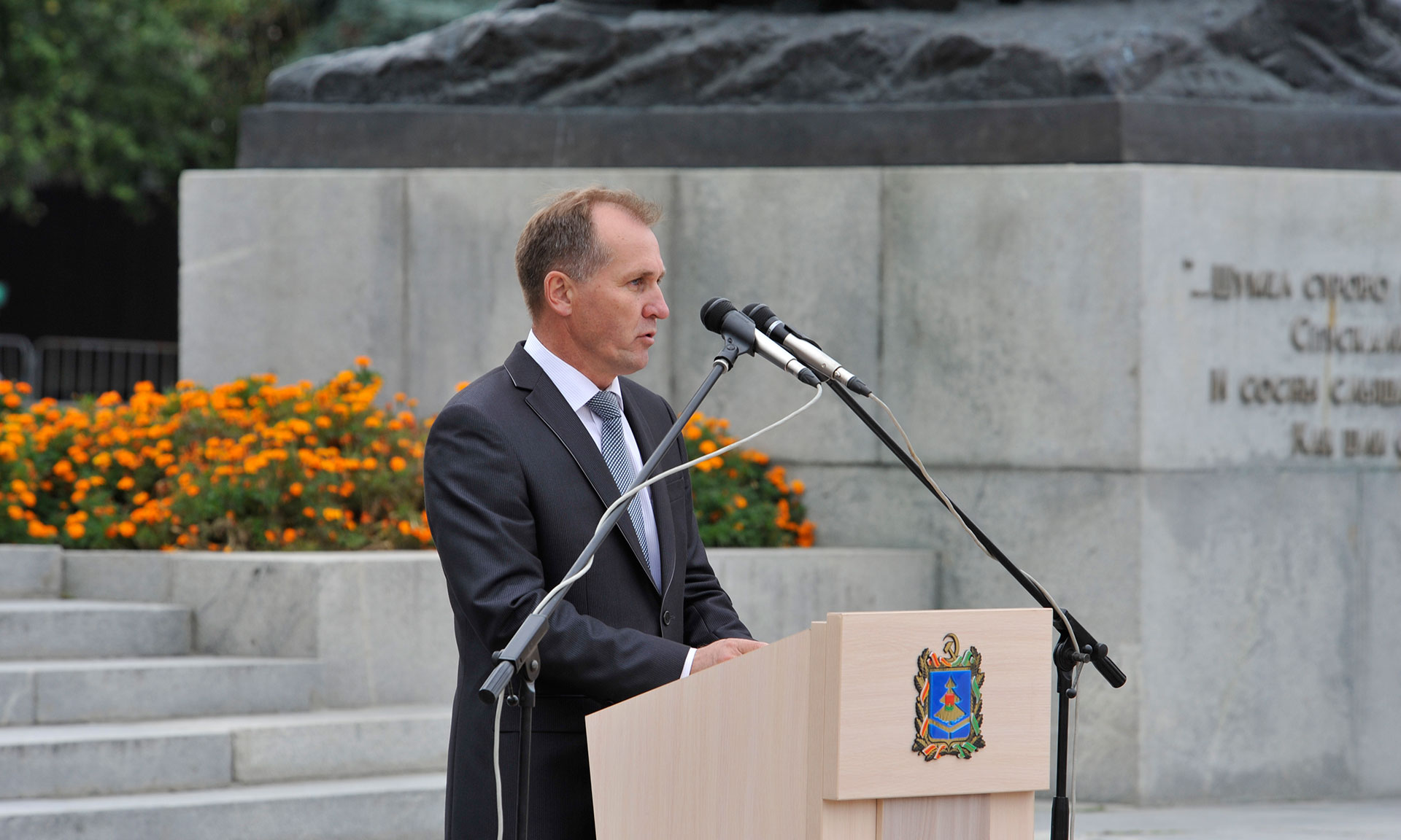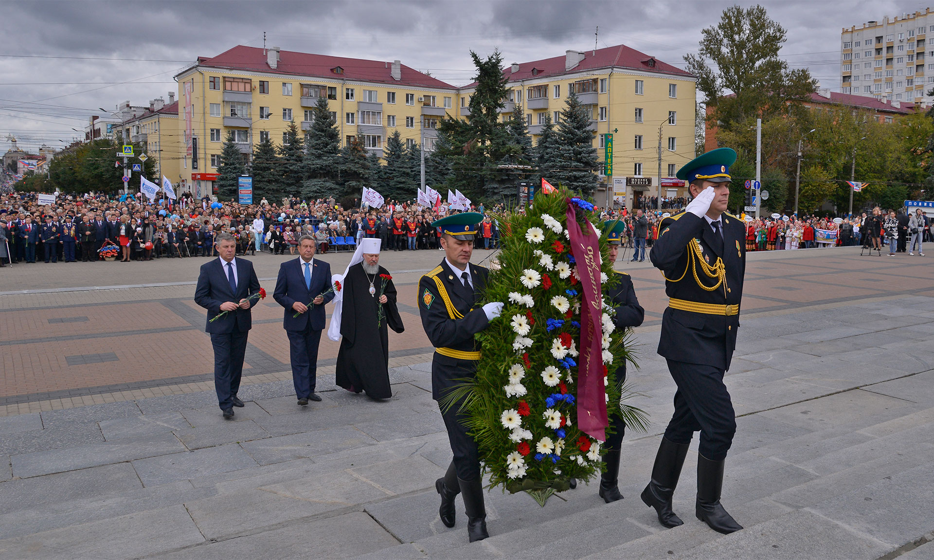 Торжественный митинг «В Брянском лесу тишина», посвященный 73-й годовщине освобождения Брянской области от немецко-фашистских захватчиков и Дню города Брянска, состоялся на площади Партизан.