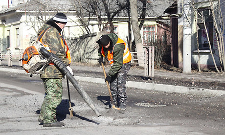 МУП «Благоустройство» к весенним ремонтным работам на городских улицах приобретено 10 тонн асфальтово-бетонной смеси. Сегодня бригада ремонтных рабочих начала ямочный ремонт улицы Красноармейской. Ямки предварительно очищаются от щебня и песка, а затем засыпаются асфальтом, разогреваются паяльными лампами и укатываются виброплитой. Как говорят дорожники, таких «заплат» хватает на несколько сезонов. В целом на содержание и ремонт улично-дорожной сети в 2017 году МУП «Благоустройство» будет выделено 4,8 млн. рублей.