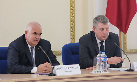 Чрезвычайный и полномочный посол Республики Куба в Российской Федерации Эмилио Лосада Гарсиа рассказал Губернатору Брянской области о реализации крупных совместных проектов Кубы и России в области строительства энергоблоков, развития железнодорожного транспорта и многих других.