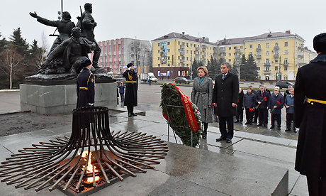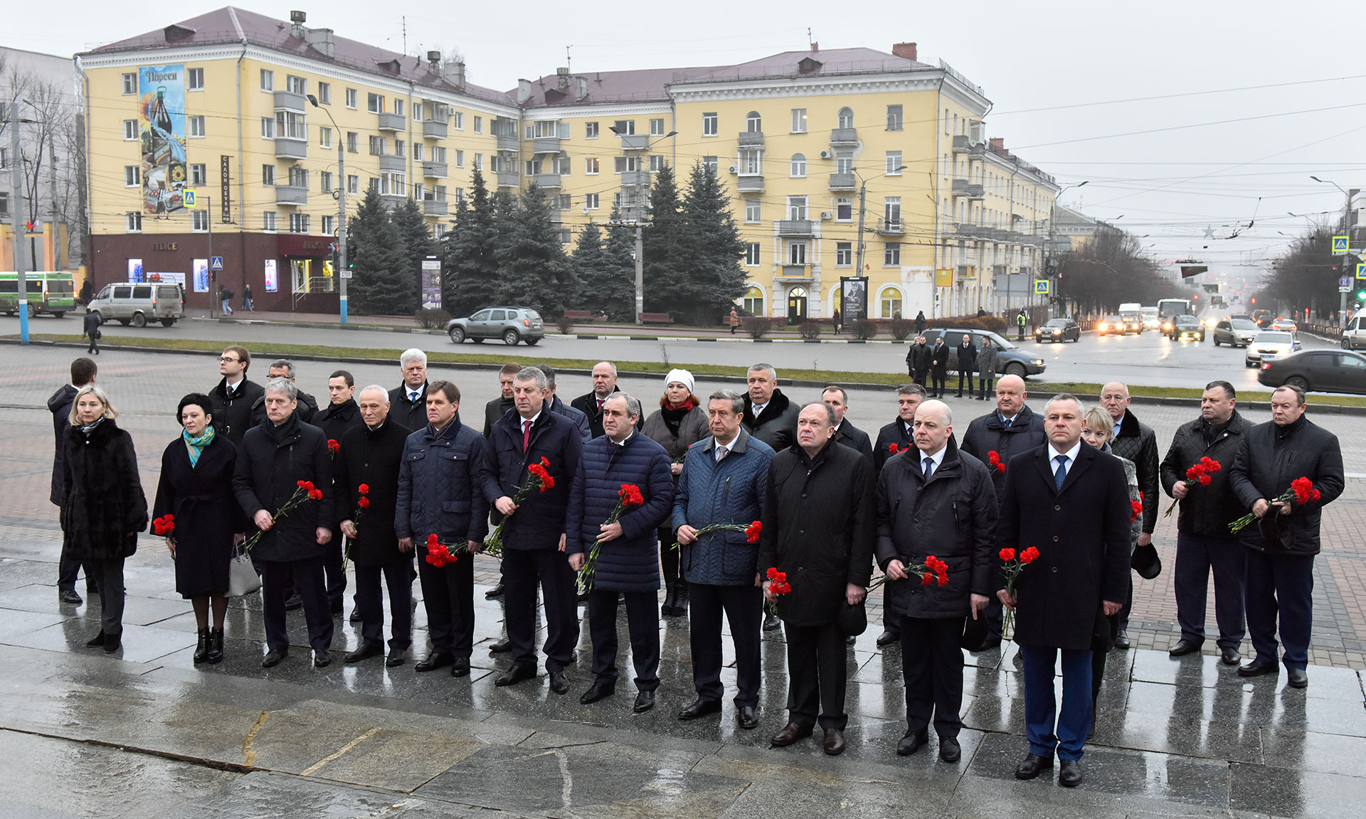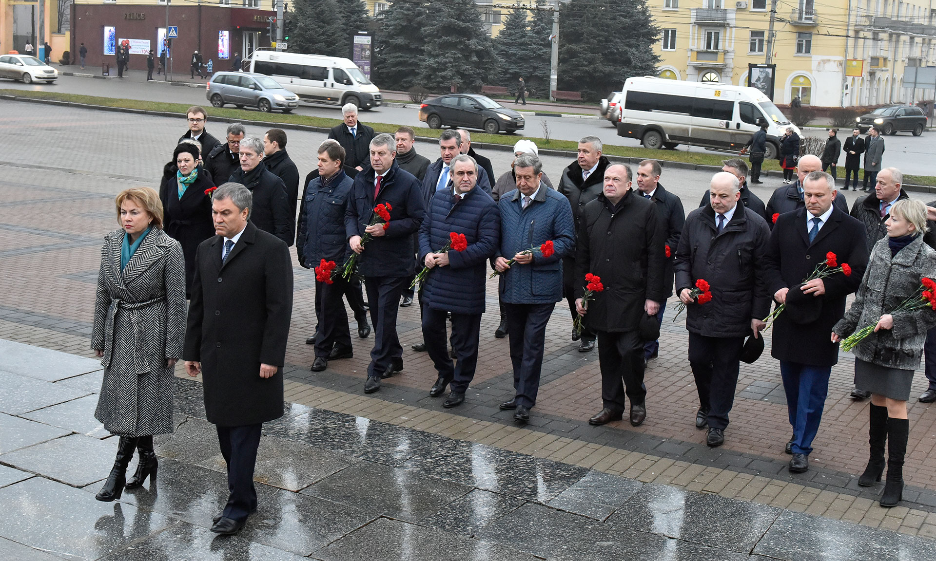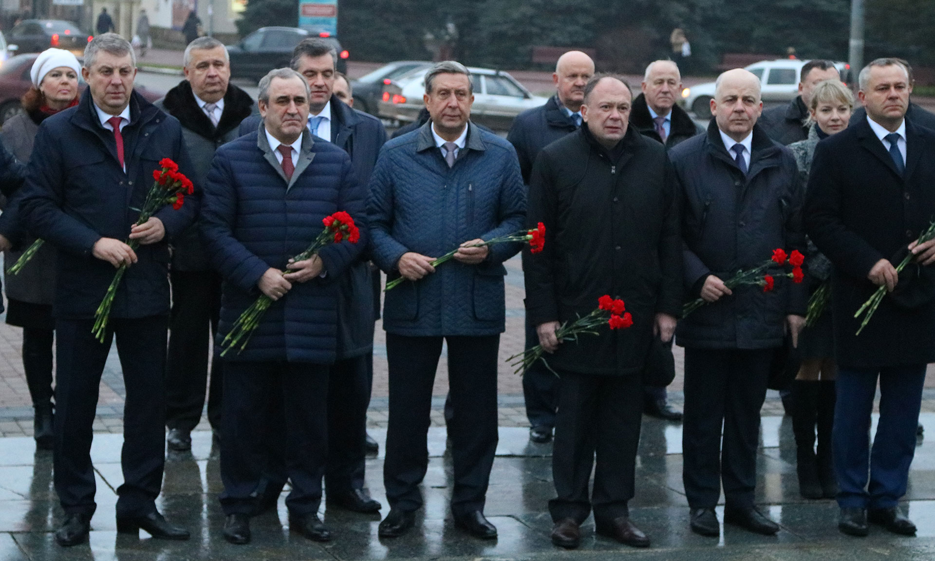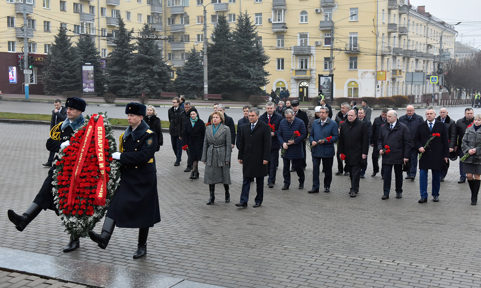 Цветы возложили Председатель Государственной Думы, Председатель Парламентского Собрания Союза Беларуси и России Вячеслав Володин, заместитель Председателя Государственной Думы Сергей Неверов, председатель Комитета Государственной Думы по международным делам, член Комиссии Парламентского Собрания по информационной политике Леонид Слуцкий, заместитель Председателя Парламентского Собрания Союза Беларуси и России, заместитель Председателя Совета Республики Национального Собрания Республики Беларусь Марианна Щёткина, заместитель Председателя Парламентского Собрания Союза Беларуси и России, председатель Постоянной комиссии Палаты представителей Национального Собрания Республики Беларусь по международным делам Валерий Воронецкий, заместитель Председателя Палаты Представителей Национального Собрания Республики Беларусь Болеслав Пирштук, Чрезвычайный и Полномочный Посол Республики Беларусь в Российской Федерации Игорь Петришенко, Губернатор Брянской области Александр Богомаз, председатель Брянской областной Думы Владимир Попков, депутаты Государственной Думы Валентина Миронова, Валентин Суббот, представители официальных делегаций России и Беларуси.