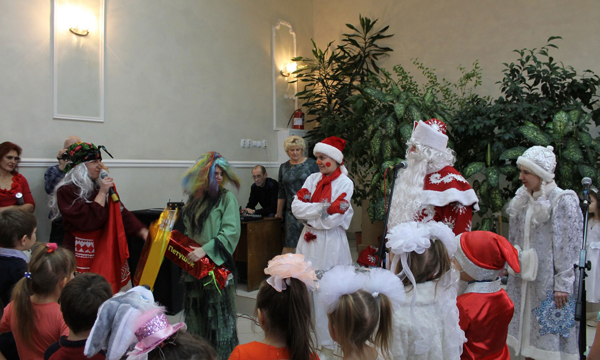 В районном Доме культуры прошел праздник для малышей «Приключения у Новогодней ёлки». У большой нарядной ёлки вместе с ребятами водили хоровод Дед Мороз, Снегурочка, Снеговик. Девчонки и мальчишки в новогодних костюмах вместе с ними пели песни, танцевали, играли в подвижные игры, разгадывали загадки.