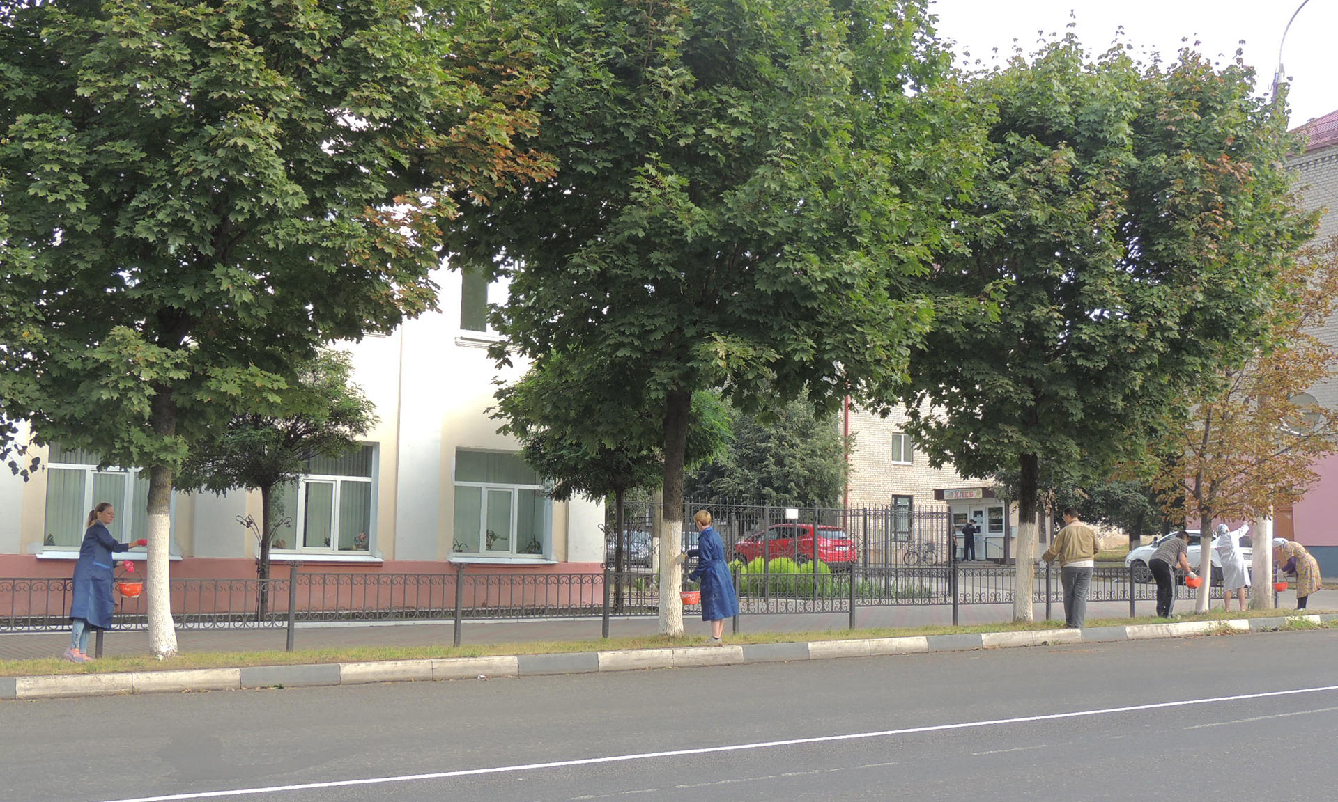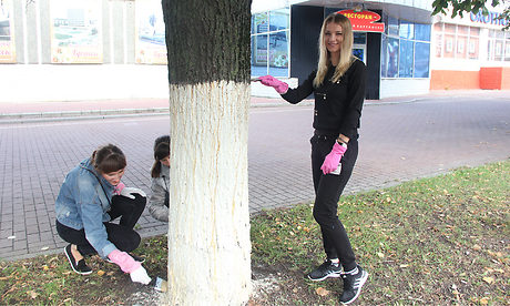 В Сураже приведены в порядок центральная улица Ленина, городской парк, сквер танкистов и прилегающие к ним улицы. Участники субботника белят деревья, столбы, красят пилоны на исторической часовне, купола на ротондах на центральной площади.