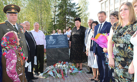 Участники возложили к мемориальной доске цветы, почтили память героя минутой молчания.
