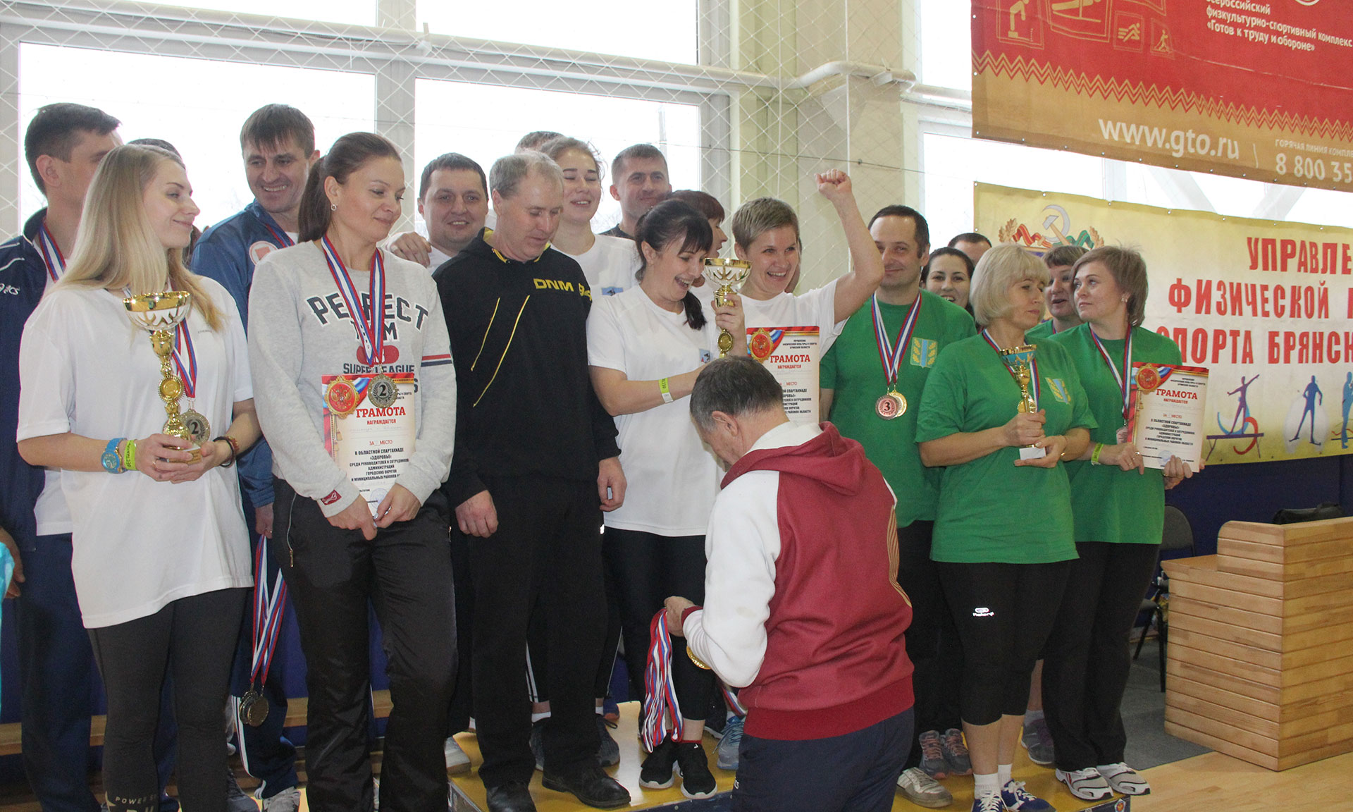 15 декабря управлением физической культуры и спорта Брянской области была проведена спартакиада «Здоровье» среди руководителей и сотрудников администраций городских округов и муниципальных районов области, депутатского корпуса, органов местного самоуправления в рамках реализации плана мероприятий по поэтапному внедрению Всероссийского физкультурно-спортивного комплекса «Готов к труду и обороне» (ГТО) в Брянской области.