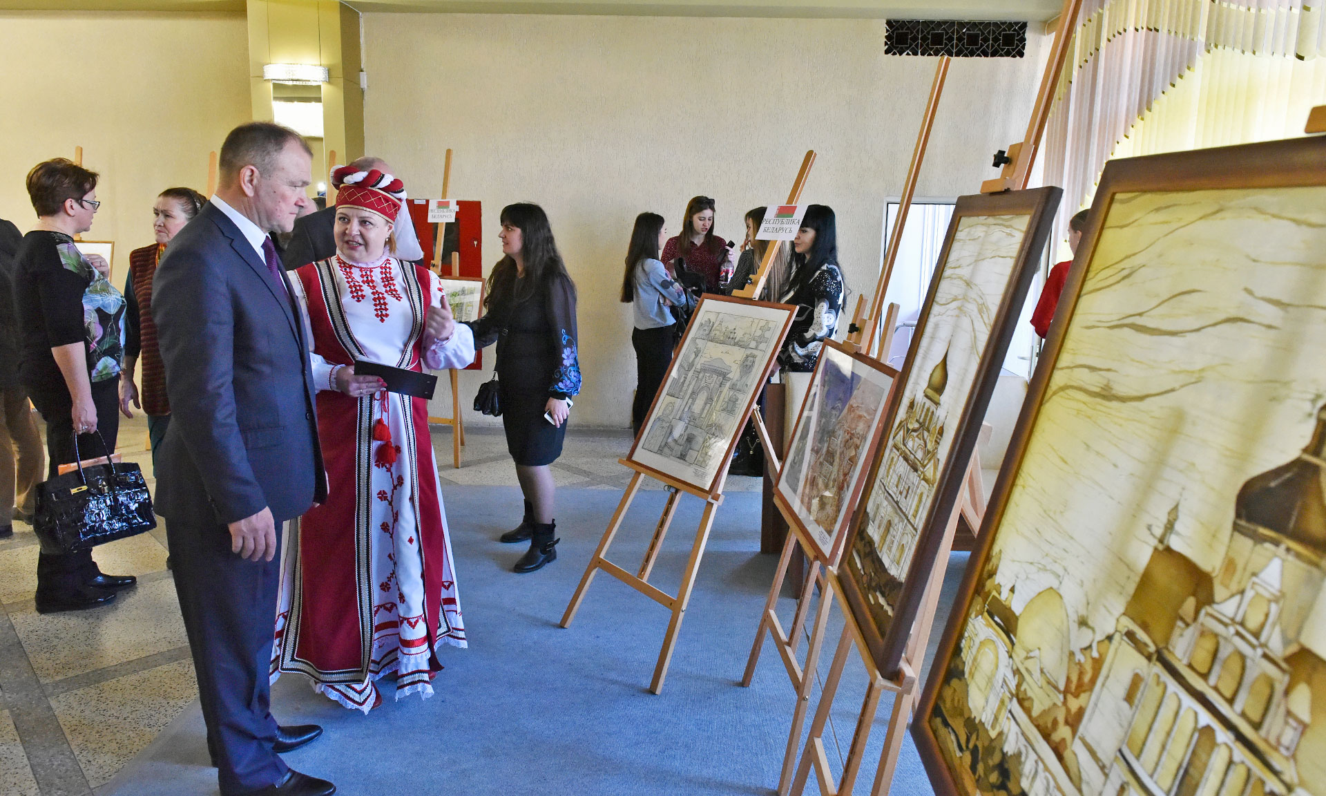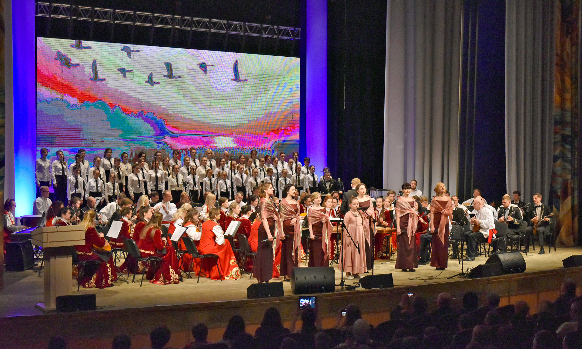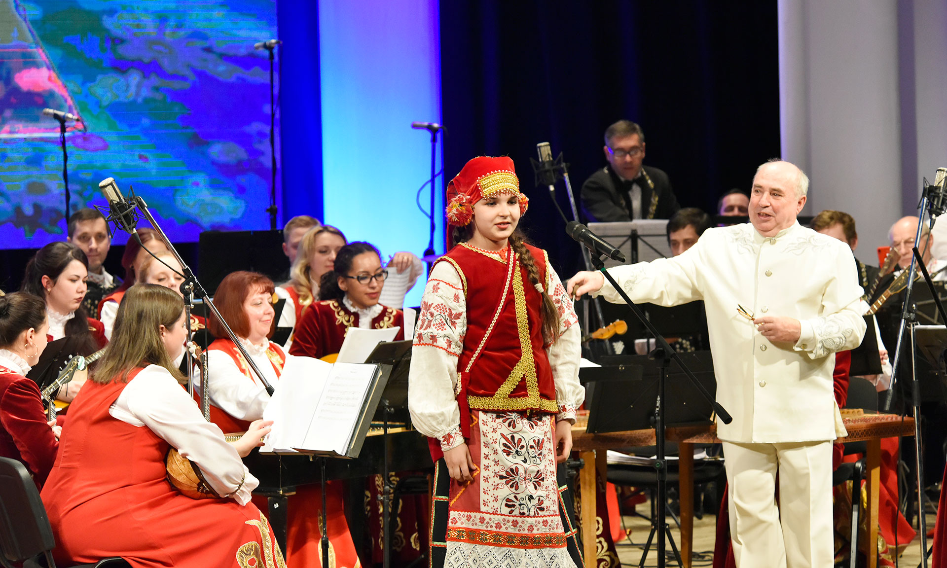 — День единения — это, наверное, не только знаменательная дата для наших народов, но и подтверждение нашей духовной и культурной общности. Сегодня на сцене представлен белорусско-российский оркестр народных инструментов. Благодаря приглашению российской стороны, мы участвуем в этом проекте. Мы прибыли в Брянск вчера, состоялись всего две репетиции, но мы уверены, что сегодня получим качественный продукт, потому что мы настолько близки и понятны друг другу, что всего лишь две репетиции позволили создать шедевр на этой сцене.