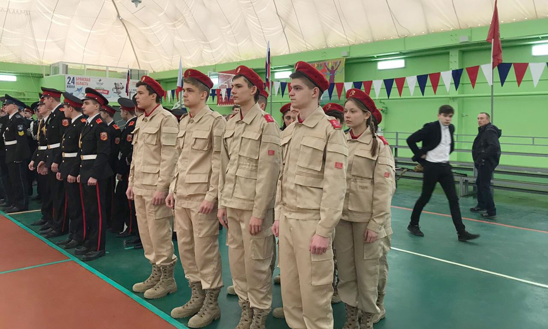 Почетное право поднять флаг РФ и открыть мероприятие было предоставлено капитану команды-победительницы прошлого года кадету Владиславу Сулайманову.