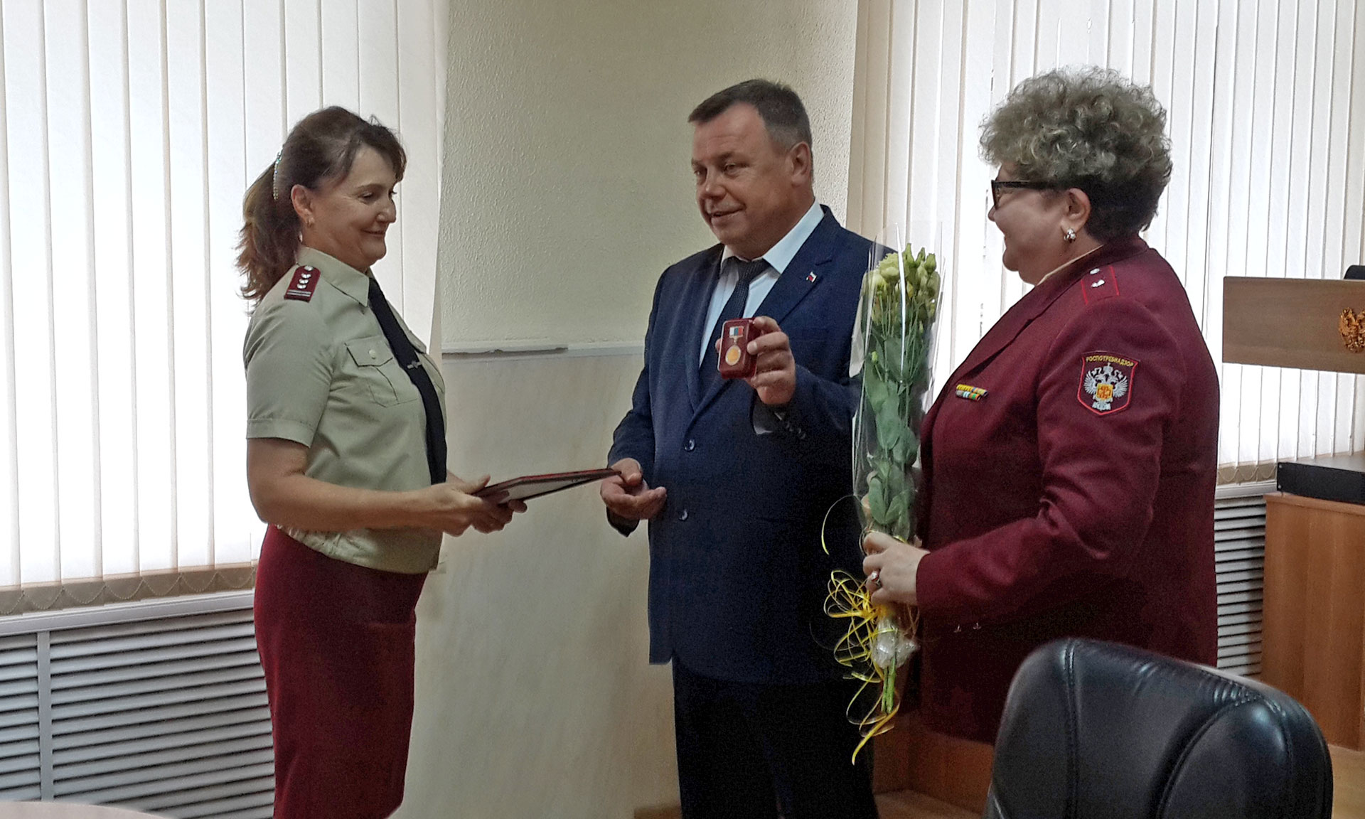 14 мая заместитель Губернатора Владимир Оборотов вручил почетные грамоты Губернатора специалистам Управления Федеральной службы по надзору в сфере защиты прав потребителей и благополучия человека по Брянской области. В награждении приняла участие руководитель управления Роспотребнадзора по Брянской области Людмила Трапезникова. Среди награжденных ведущий специалист-эксперт отдела санитарного надзора Наталья Хучкина, ведущий специалист-эксперт территориального отдела в Брянском, Выгоничском, Карачевском, Навлинском районах Владимир Корябин и ведущий специалист-эксперт отдела защиты прав человека Тамара Волостных.