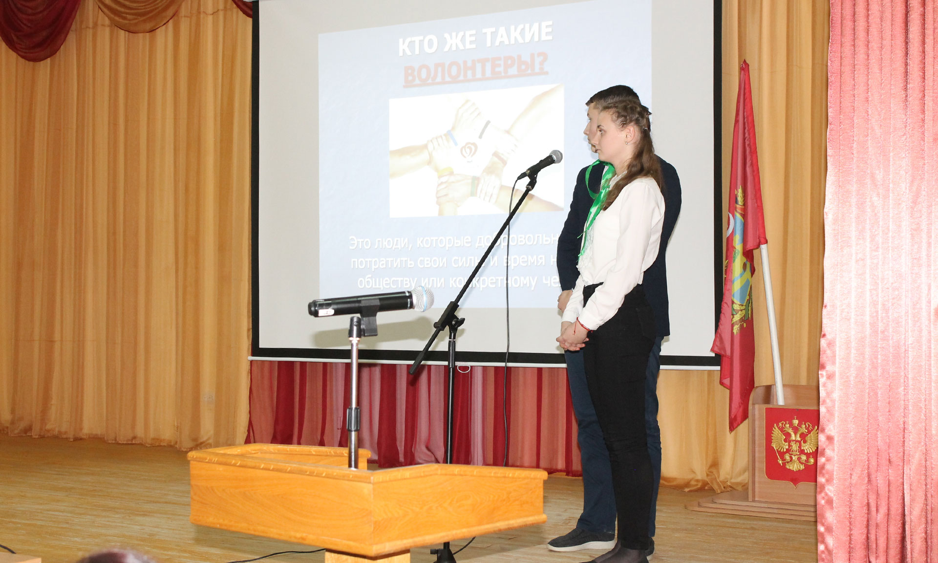 В работе ярмарки также приняли участие члены волонтерского отряда «Мы рядом» СОШ № 1 п. Клетня, которые подготовили красочное выступление — песнями и стихами рассказали присутствующим о своем полезном деле: помощи ветеранам, пожилым людям, пенсионерам, а также пригласили всех желающих вступить в волонтерский отряд.