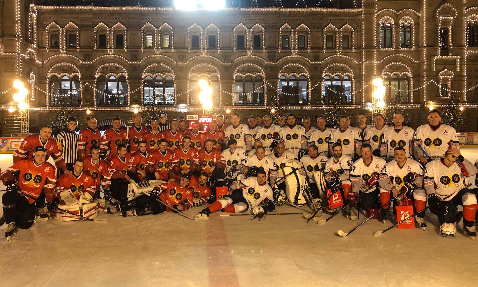 После церемонии награждения всех участников товарищеского хоккейного матча на Красной площади состоялись массовые катания, флэш-моб, эстафеты, катания на каруселях ГУМ-ярмарки, работала полевая кухня, где можно было попробовать настоящую солдатскую гречневую кашу и согреться горячим чаем.