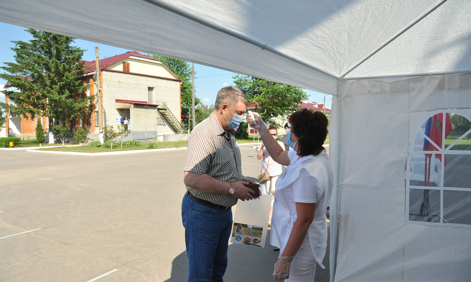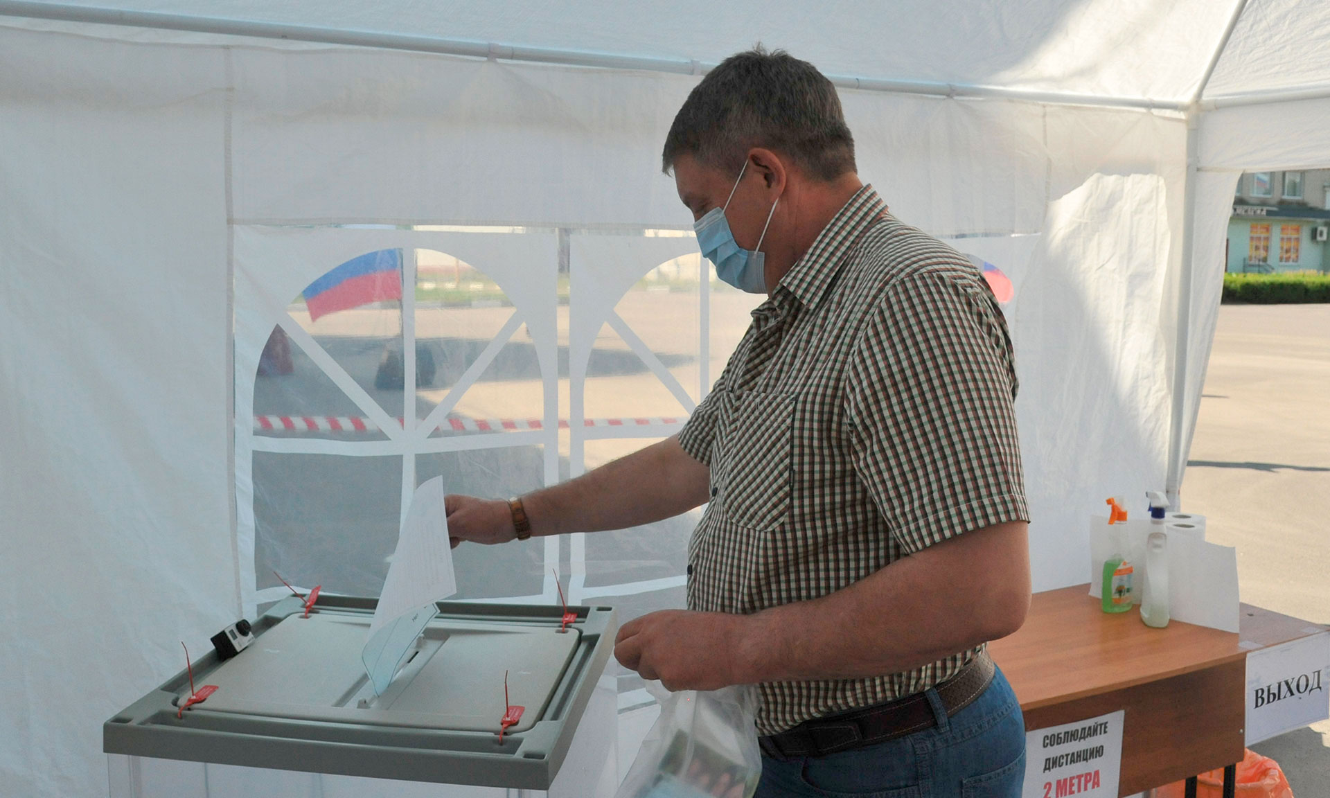 Голосование проходит с соблюдением всех мер безопасности. Средства индивидуальной защиты выдают участникам голосования прямо на участках для голосования.