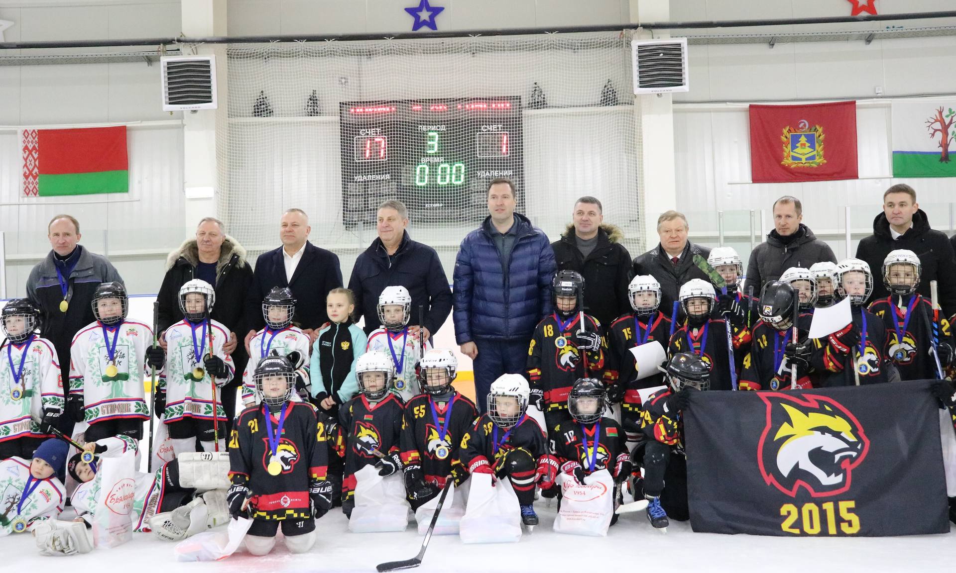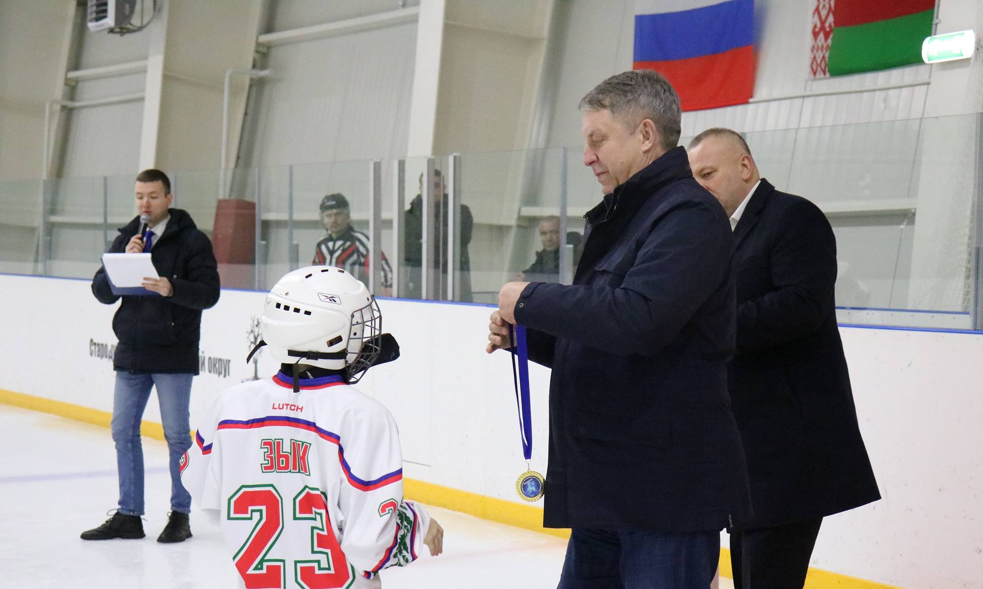 После приветственных слов гостей и звучания гимнов Республики Беларусь и Российской Федерации на ледовую арену вышли хоккейные команды «Гомель» спортивной детско-юношеской школы олимпийского резерва Республики Беларусь и «Олимп» Стародубской детско-юношеской спортивной школы.