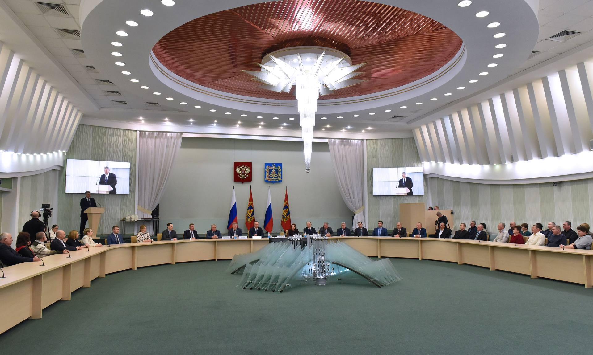 — Добрый день уважаемые работники и ветераны жилищно-коммунального хозяйства нашего региона. Разрешите мне от имени председателя Совета Федерации Федерального собрания Российской Федерации Валентины Ивановна Матвиенко и от себя лично поздравить вас с профессиональным праздником.