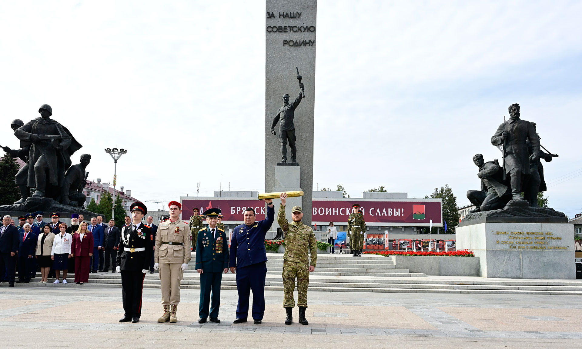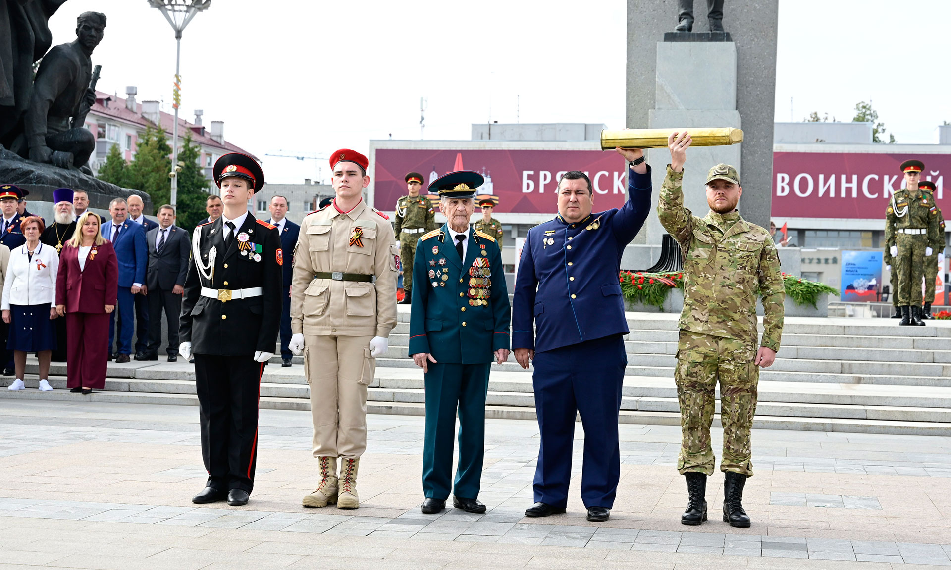 В день 82-й годовщины освобождения Брянщины от немецко-фашистских захватчиков и 1040-летию образования города Брянска состоялась торжественная церемония передачи земли, привезенной с памятных мест муниципальных образований Брянской области, от ветеранов Великой Отечественной войны участникам специальной военной операции в рамках акции «Сила земли».