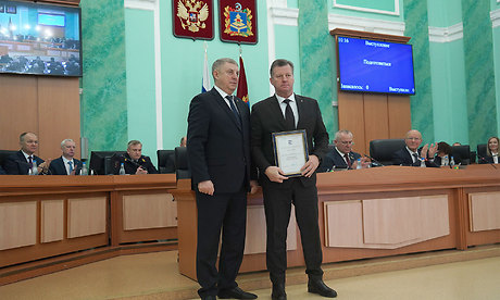 Председатель Брянской областной Думы Валентин Суббот вручил удостоверения и нагрудные знаки гражданам, удостоенным почетных званий «Заслуженный изобретатель Брянской области» и «Заслуженный работник культуры Брянской области».
