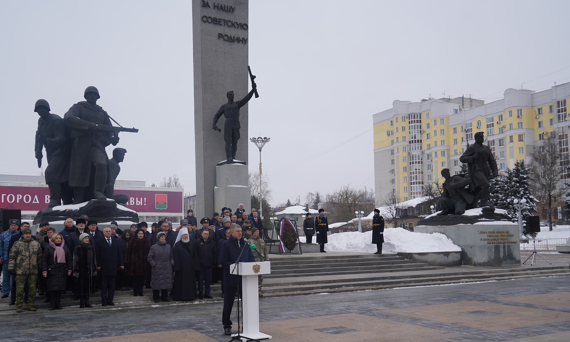 23 февраля в Брянске состоялась торжественная церемония возложения цветов к Вечному огню на площади Партизан.